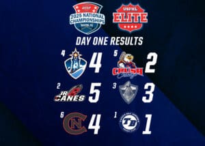 Read MoreWe have arrived at Day 1 of the #USPHLPlayoffs! Three #USPHLElite games today start us on the Pathway To The #USPHLNationals March 20-24 in Wayne, New Jersey. Saturday’s games: Southeast Division (Double Elimination Tournament) Hampton Roads Whalers 3, Charlotte Rush 2 (OT) Our first multiple-OT game of the 2025 postseason came to a close with a Whalers…